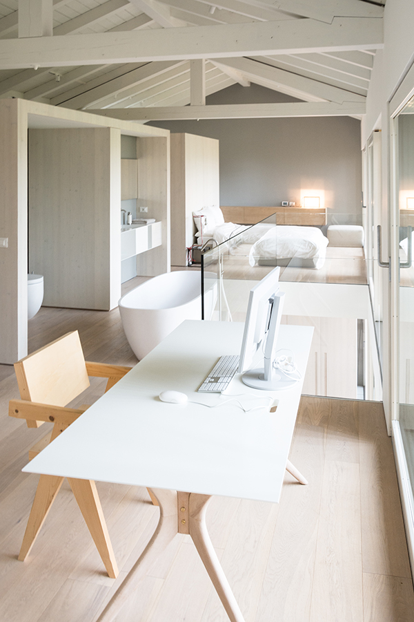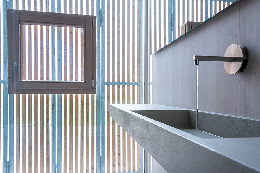 Matrice - Malta utilizzata nelle due tonalità pioggia e neve, accostata a materiali naturali come legno e pietra.
